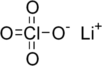 El perclorato de litio es un compuesto inorgánico con fórmula LiClO4. Es una sal blanca o incolora que destaca por su alta solubilidad en la mayoría de disolventes. Existe tanto en forma anhidra y como en trihidrato.
