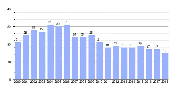 | Gráfica de evolución demográfica de Pereira-Fera entre 2000 y 2018 |