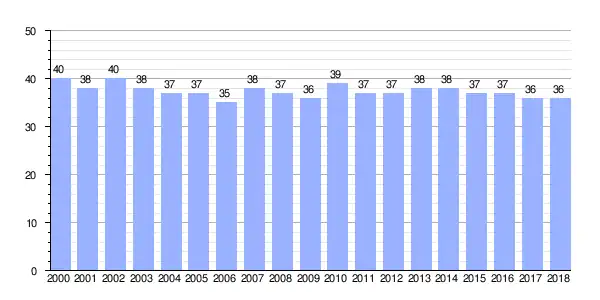 | Gráfica de evolución demográfica de Pereira entre 2000 y 2018 |
