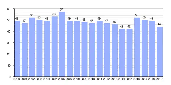 | Gráfica de evolución demográfica de Pereira (parroquia) entre 2000 y 2019 |