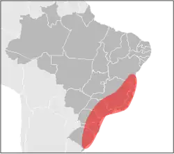 Cultivada y posiblemente escapada en las áreas más secas, es nativa del este de Brasil, ampliamente cultivada y naturalizada en Mesoamérica y el Caribe. En Brasil se encuentra en la Mata Atlántica, distribuida por Maranhão, Ceará, Pernambuco, Bahia, Minas Gerais, Espírito Santo, São Paulo, Río de Janeiro, Paraná y Santa Catarina.