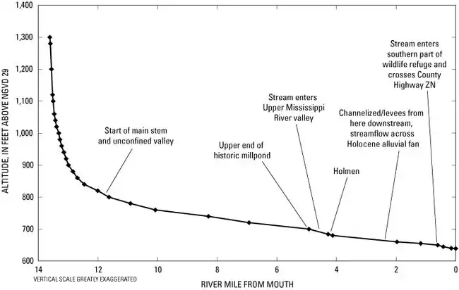 Perfil de un río real (Halfway Creek, curso alto del río Misisipi):