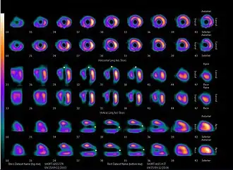 La perfusión miocárdica es una práctica médica que se basa en el uso de radiofármacos (ej: 99mTc-MIBI), los cuales se administran mediante inyección endovenosa (vaso sanguíneo) y se concentran en el tejido miocárdico (2% de la dosis administrada) fijándose en las mitocondrias, pues solo atraviesa las membranas de las células vivas y permiten evaluar indirectamente la irrigación (perfusión) global y regional del ventrículo izquierdo y su viabilidad.