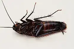 ![]() Una cucaracha café ahumada (Periplaneta fuliginosa) hembra con ooteca. | ||