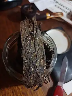 - ↑ Lachenmeier, Dirk W.; Breaux, Theodore A.; Kuballa, Thomas; Schlee, Claudia; Monakhova, Yulia B. (15 de septiembre de 2014). «Composition of distilled Perique tobacco liqueur: A connoisseur’s spirit or a health risk due to nicotine?». Food Chemistry (en inglés) 159: 230-235. ISSN 0308-8146. doi:10.1016/j.foodchem.2014.02.152. Consultado el 5 de noviembre de 2022.