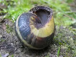 En gastrópodos con caparazón (caracoles)