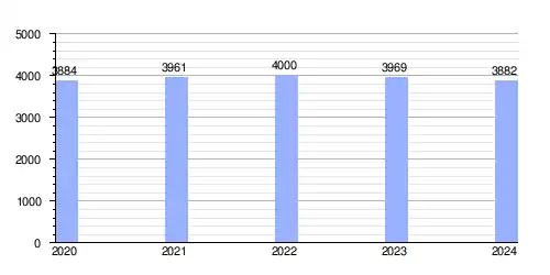 Hasta 2024 la población era de 3882 habitantes,[2] con una densidad de población de 52,09 hab/km².[2]