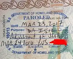 Permiso de permanencia temporal, conocido en inglés como Parole, en las leyes de inmigración de los Estados Unidos, generalmente se refiere al permiso oficial para ingresar y permanecer temporalmente en los Estados Unidos, bajo la supervisión del Departamento de Seguridad Nacional (DHS),[1] sin admisión formal, y mientras permanezca un solicitante de admisión.[1]
