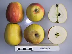 'Pero Dourado' es una variedad de manzana, cultigen recibido por los National Fruit Trials en 1952 procedente de Portugal.[5][6]