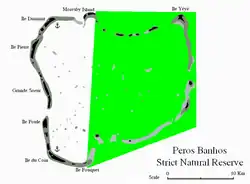 La parte del atolón al este de una línea trazada entre el punto de tierra más al este en la isla Moresby (norte) y el punto de tierra más al este en la isla Fouquet (sur) se encuentra dentro de la reserva natural integral del atolón de Peros Banhos. La entrada a esta y a las otras reservas naturales integrales, y dentro de los 200 metros de las islas, está prohibida y las actividades están claramente prohibidas por el Territorio Británico del Océano Índico.[6]