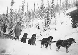 La fiebre del oro de Alaska renovó el interés en el uso de perros de trineo como medio de transporte.[12] A la mayoría de los campamentos de oro sólo se podía acceder en trineos tirados por perros durante el invierno.[13] "Todo lo que se movía durante la temporada de heladas se movía por tiro de perros; buscadores, tramperos, médicos, correo, comercio, transporte de suministros... si necesitaba moverse en invierno, era movido por perros de trineo".[12] Esto, junto con el uso de perros en la exploración de los polos, llevó a que finales del siglo XIX y principios del XX fueran apodadas la "Era de los perros de trineo".[14]