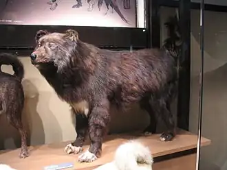 El perro esquimal canadiense o perro inuit canadiense, también conocido como Exquimaux Husky, perro esquimal y Qimmiq (una palabra del idioma inuit para perro), tiene su origen en los perros de trineo aborígenes utilizados por el pueblo Thule del Ártico de Canadá. [34] La raza tal como existe hoy se desarrolló principalmente gracias al trabajo del gobierno canadiense. [34] Es capaz de tirar entre 45 and 80 kg por perro para distancias entre 24 and 113 kilómetros. [34] El perro esquimal canadiense también se utilizó como perro de caza, ayudando a los cazadores inuit a capturar focas, bueyes almizcleros y osos polares . [34] El 1 de mayo de 2000, el territorio canadiense de Nunavut adoptó oficialmente al "perro inuit canadiense" como símbolo animal del territorio. [35] Se considera que genéticamente son de la misma raza que el Perro de Groenlandia, ya que las investigaciones muestran que aún no han divergido genéticamente lo suficiente como para ser considerados razas separadas. [36]