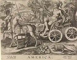 Las representaciones de América incluían detalles exóticos de fondo, especialmente fauna desconocida en Europa como "el loro o guacamayo, tortuga, armadillo, tapir, perezoso, jaguar y aligator".[8] Sin embargo, los tatuajes usados por ambos sexos, que asombraron a los primeros escritores, fueron omitidos por artistas con sede en Europa, aunque dibujados por viajeros. Puede que se les haya considerado indecorosos en las personificaciones femeninas.[7]