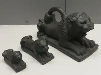 Una pesa de bronce con forma de león descubierta en 1901 en el Palacio de Darío en Susa, datada en el siglo V a. C., se encuentra actualmente en el Museo del Louvre con el número de identificación Sb 2718.[14] No está inscrita.