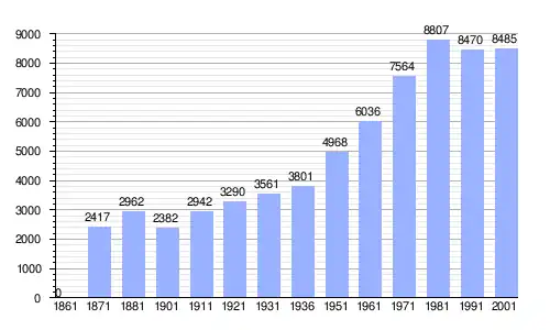 | Gráfica de evolución demográfica de Peschiera del Garda entre 1861 y 2001 |