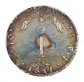 El bando de Hilarión de la Quintana dispuso que la moneda de plata llevaría en su anverso el escudo nacional, la inscripción libertad unión y fuerza, y el año de acuñación.[6] El escudo consistía en el símbolo de la columna, relacionado con el concepto del árbol de la libertad presente en la guerra de Independencia de los Estados Unidos y en la Revolución francesa, y que representaba a la libertad y su permanencia.[7] La columna se encontraba coronada con un globo terráqueo iluminado por la luz de una estrella, lo que representaba un elemento de progreso y desarrollo, en contraposición de la oscuridad de la época colonial.[8] Estos símbolos ya se encontraban en el primer escudo de Chile, utilizado en 1812 por el primer gobierno patriótico de José Miguel Carrera,[9] y que se mantuvo en el segundo escudo con un mayor énfasis en la columna de la libertad.[7] La inscripción en el anverso de la moneda estaba en concordancia con las ideas independentistas, y representaban el nuevo orden.[6] En esta cara de la pieza también aparecían las iniciales del grabador.[10]