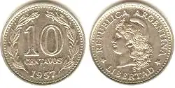 | 10 Centavos | 1956-1959 | Acero revestido en Níquel | ||||