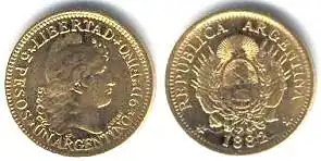 | 5 Pesos (un Argentino de oro) | 1881-1889 y 1896 | Oro | |||