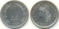 | Sesquicentenario de la Revolución de Mayo | 1960 | 1 peso (Acero revestido en Níquel) | ||