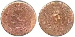 2 Centavos | 1882-1885 y 1887-1896 | 30 mm | Cobre | |