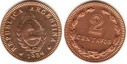 Las monedas de plata se dejaron de acuñar por ser antieconómicas. Con la Ley 3.321, del 4 de diciembre de 1895, debido a la alta demanda de circulante de menor rango, se realizó una nueva acuñación de monedas, esta vez de cuproníquel (75% níquel, 25% cobre). Esta serie de monedas duró más de 40 años de forma casi ininterrumpida. En 1941, mediante el Decreto 45.560 (27 de octubre de 1939), se emitió la moneda de 50 centavos de níquel puro y nuevamente las monedas de 1 y 2 centavos, de cobre —aunque de menor tamaño—.