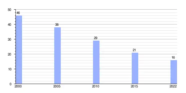| Gráfica de evolución demográfica de Pesqueiras entre 2000 y 2022 |