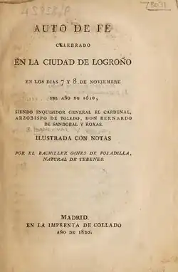 - ↑ López Poza, Fernando (2019). «Una relación sobre la peste en Logroño en 1599». Malas noticias y noticias falsas. Estudio y edición de Relaciones de sucesos (siglos XVI-XVII): 67.