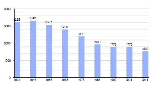 | Gráfica de evolución demográfica de Petarnitsa entre 1934 y 2011 |
