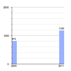 | Gráfica de evolución demográfica de Petersfield entre 2000 y 2011 |