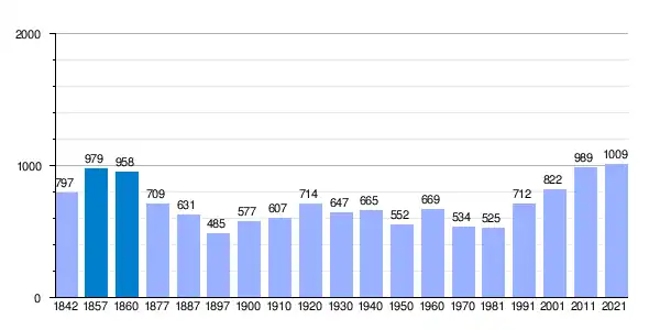 | Gráfica de evolución demográfica de Petrés[2] entre 1842 y 2021 |