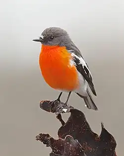 ![]() Petroica flamígera (Petroica phoenicea) en Eaglehawk Neck, Tasmania | ||