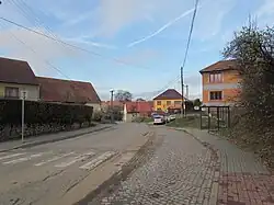 Se encuentra ubicada al sureste de la región, cerca de la orilla de los ríos Jihlava y Svratka (cuenca hidrográfica del Danubio) y de la región de Moravia Meridional.[1]