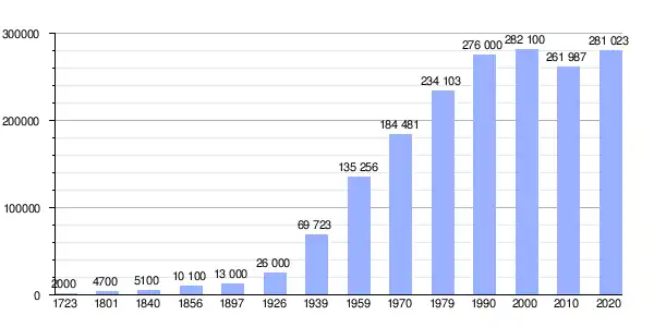 | Gráfica de evolución de Petrozavodsk entre 1723 y 2020 |