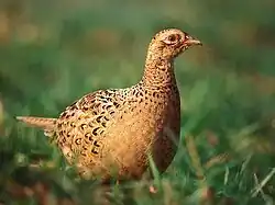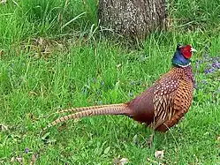 El faisán común o faisán vulgar (Phasianus colchicus)[2] es una especie de ave galliforme de la familia Phasianidae originaria del Asia templada,[3] aunque se encuentra ampliamente distribuida por haber sido introducida en diversas partes del mundo con fines cinegéticos. En su medio natural viven en las praderas y los bosques abiertos.