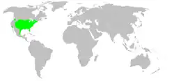 Esta especie es común en el sureste de Canadá, la mayor parte de los Estados Unidos, México y partes de América Central, ha sido introducida a Hawái y la Islas Nicobar, también ha sido vista en Puerto Rico y en el área metropolitana en santo domingo República Dominicana.