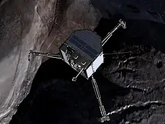 Philae llegó a la superficie del cometa 67P/Churyumov-Gerasimenko, aproximadamente a las 17 h (GMT) del 12 de noviembre de 2014 tras un descenso de siete horas.[9][11][12]