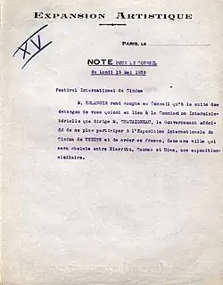 Fue él quien tuvo la idea del Festival de Cannes en 1939, como reacción al descrédito cubierto por el Festival de Cine de Venecia que premió, en 1938, el documental de Leni Riefenstahl Los dioses del estadio, bajo la influencia del nazismo., empatado con una película supervisada por el hijo de Mussolini . Presente en Venecia, puede anunciar el lanzamiento de una iniciativa competitiva, con la aprobación de su ministro supervisor, Jean Zay, ministro de Educación Pública y de Bellas Artes. La ciudad de Cannes es elegida por su placer y sol. Primer delegado general del festival (1946-1951), Philippe Erlanger también fue miembro del jurado en 1953 y 1954 . En 1956 eliminó Nuit et Brouillard de Alain Resnais de la selección del festival de Cannes para no ofender a Alemania. Siguió siendo presidente honorario del Festival de Cine de Cannes hasta su muerte en 1987.