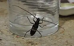 Como una mayoría de los polyphagos se alimenta en fase larvaria de madera, este en concreto de la de eucalipto, pasando la mayor parte de su vida en este estado. Debido al comercio maderero se ha extendido mucho fuera de su área de origen, Australia, convirtiéndose en especie invasora en varios continentes, desde Europa y África hasta América del Sur. Existen registros de su presencia en Córcega (Francia), Israel, Mozambique, España,[1] Portugal, Suecia, Uruguay, Zimbabue y Chile.