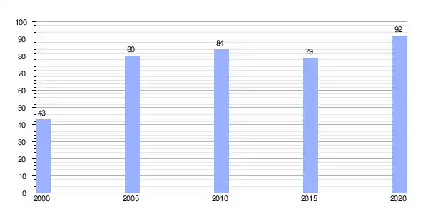 | Gráfica de evolución demográfica de Piúgos (aldea) entre 2000 y 2020 |