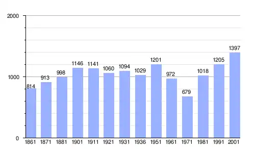 | Gráfica de evolución demográfica de Piane Crati entre 1861 y 2001 |