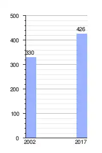 | Gráfica de evolución demográfica de Pichasca entre 2002 y 2017 |