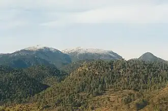 Respecto de la vegetación abunda el bosque de pinos hasta los 1600 metros. A partir de aquí hay bosque bajo de matorral casi hasta la cumbre.