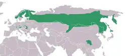 El hábitat de reproducción se extiende a través de los bosques de coníferas del norte de Eurasia desde Noruega a Corea. También hay poblaciones en los Alpes y los Cárpatos.
