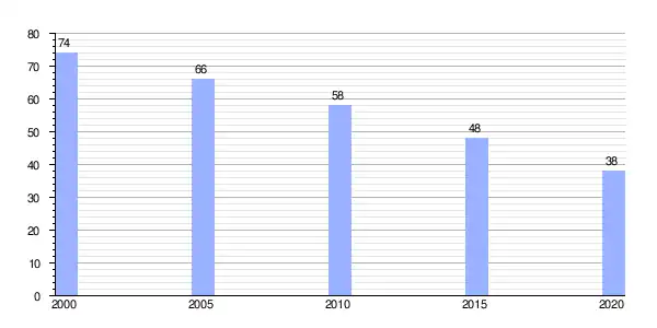 | Gráfica de evolución demográfica de Pidre (parroquia) entre 2000 y 2020 |