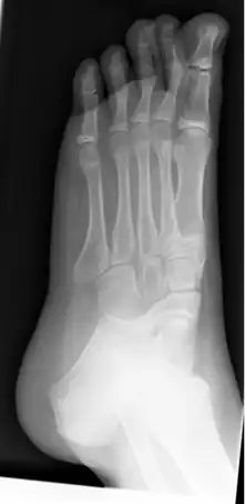 Radiografía de pie izquierdo plano en un niño de 10 años. | ||
