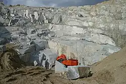 Como materia prima, la piedra de Makabe se extrae de canteras en explotaciones mineras a cielo abierto. Aunque la roca de color blanco se usa principalmente, la de color azulado y la de negro también se usan y son de mayor costo.