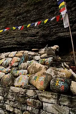 Las piedras mani son placas de piedra, rocas o guijarros donde se inscribe el mantra de seis sílabas de Avalokiteshvara[1] (Om mani padme hum, de ahí el nombre de piedra mani), como forma de oración en el budismo tibetano.