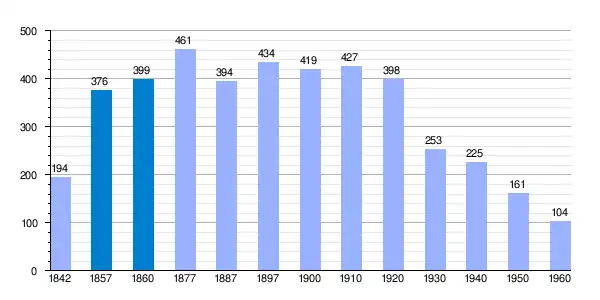 | Gráfica de evolución demográfica de Piedrahíta[5] entre 1842 y 1960 |