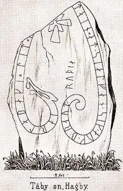 - Iarlaba[nki] let ræisa stæina þessa at sik kvikvan, ok bro þessa gærði fyr and sina, ok æinn atti allan Tæby.