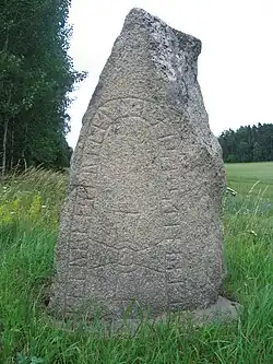 - Ingifastr let rista runaR þessaR æftiR Ragnfriði, kvinnu sina, ok [Hæ]m[i]ngR æftiR moður sina.